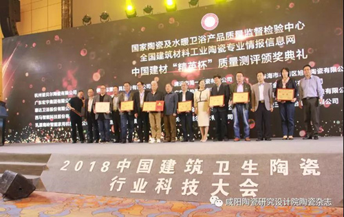 論壇大會上,還進行了頒獎活動。工信部陶瓷及衛浴產品質量和技術評價實驗室、全國建筑材料工業陶瓷專業情報信息網聯合主辦了2018年度建筑衛生陶瓷行業“質量突出貢獻獎”、“創新產品獎”、“綠色陶瓷磚”、“綠色衛生陶瓷”、“智能產品獎”、“綠色節能窯爐”等獎項的評價活動,大會為獲獎企業隆重頒獎。同時由國家陶瓷及水暖衛浴產品質量監督檢驗中心聯合全國建筑材料工業陶瓷專業情報信息網共同組織開展的建筑衛生陶瓷產品質量測評活動“年度精英杯”獲獎企業也受到表彰。常務副院長李轉宣布獲獎企業名單并主持頒獎活動。
